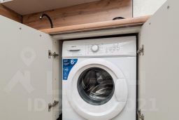 Централизованное кондиционирование, стиральная машина, холодильник, микроволновая печь, варочная панель, чайник, фен, гладильные принадлежности