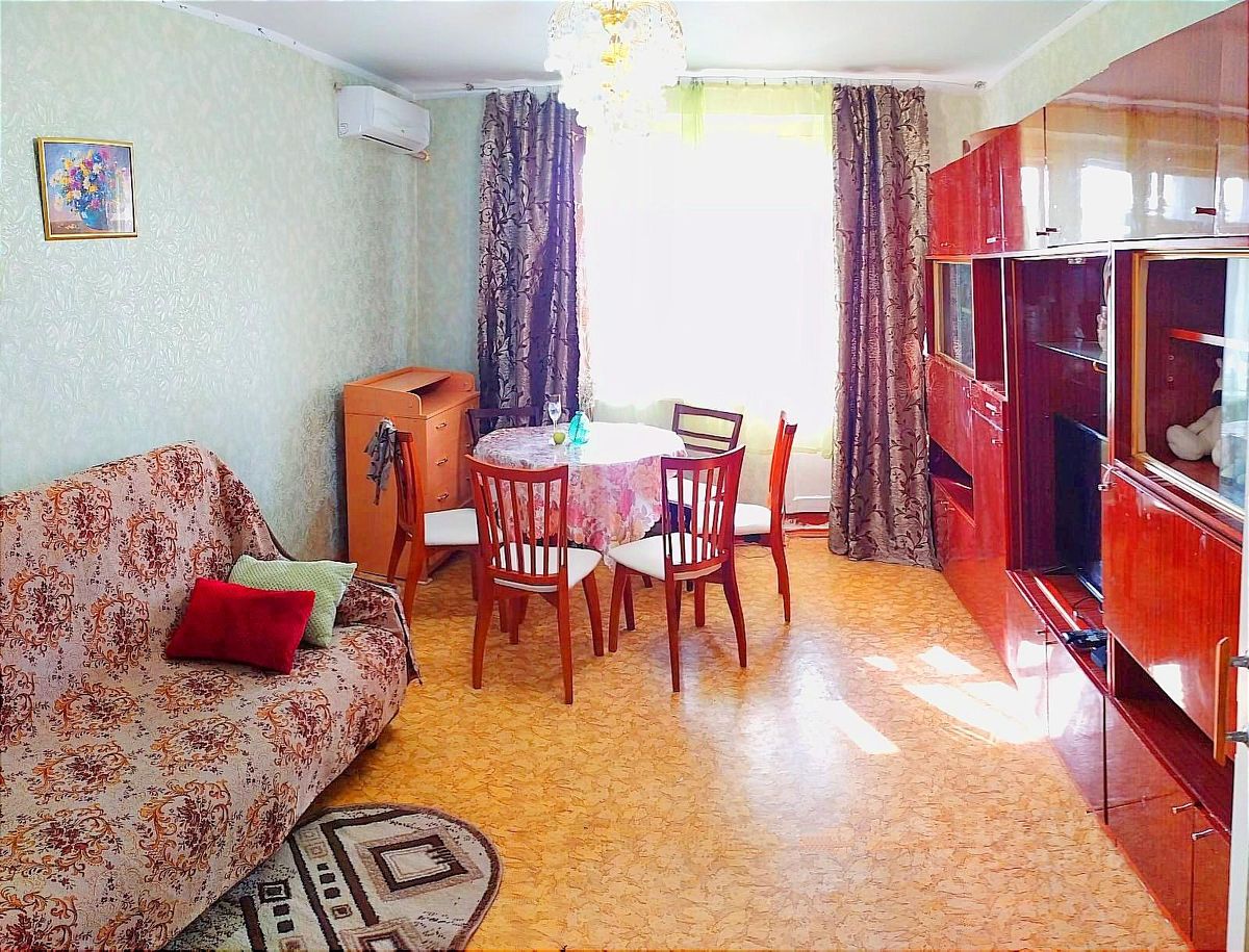 В квартире имеется :,чистое бельё, техника, посуда, интернет, телевидение, большая лоджия с видом на горы.