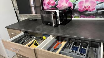 Чистое постельное бельё и полотенца, шампунь, гель, одноразовые з/щётки, о/тапочки, с/порошок, микроволновка, вся посуда, чай, кофе, сахар и т.д. Есть всё необходимое для комфортного проживания.