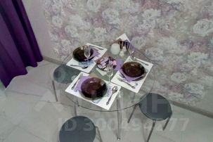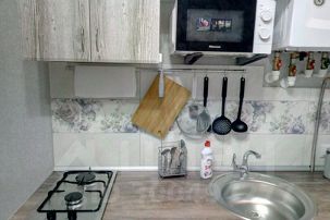 Кухня-студия: раскладной двухместный диван (ширина 160 см), кресло-кровать (для ребенка до 7-8 лет), кухонный стол, табуреты, кухонный гарнитур, холодильник, газовая плита, стиральная машина, микроволновка, автономный двухконтурный котел (можете сами регулировать температуру в квартире), выход на балкон.