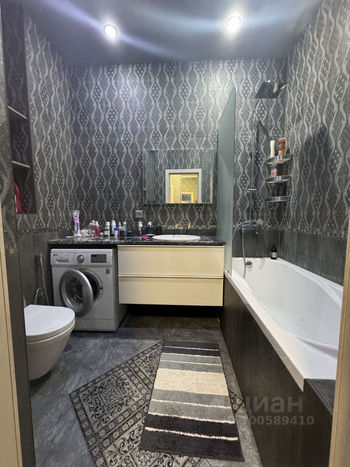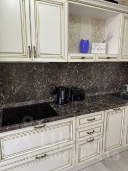 В ванной мраморная столешница, керамогранит итальянский. Спальня 24 м, с подсветкой по периметру потолка. Итальянская кухня выполнена на заказ, доводчики bloom, вся техника встроенная; обеденный стол с мягкими 4 стульями.