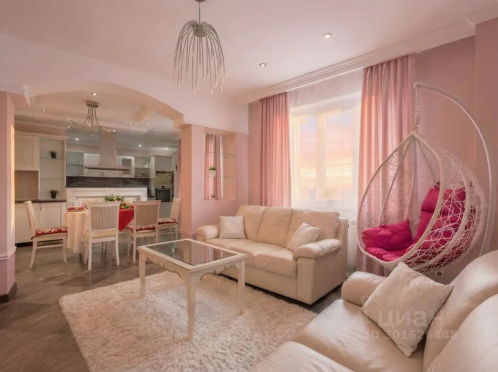 Просторная светлая гостиная (3) оснащена раскладным диваном-кроватью. Большой телевизор с диагональю 43 дюйма (sber tv) сделает просмотр любимых передач и фильмов ещё приятнее.