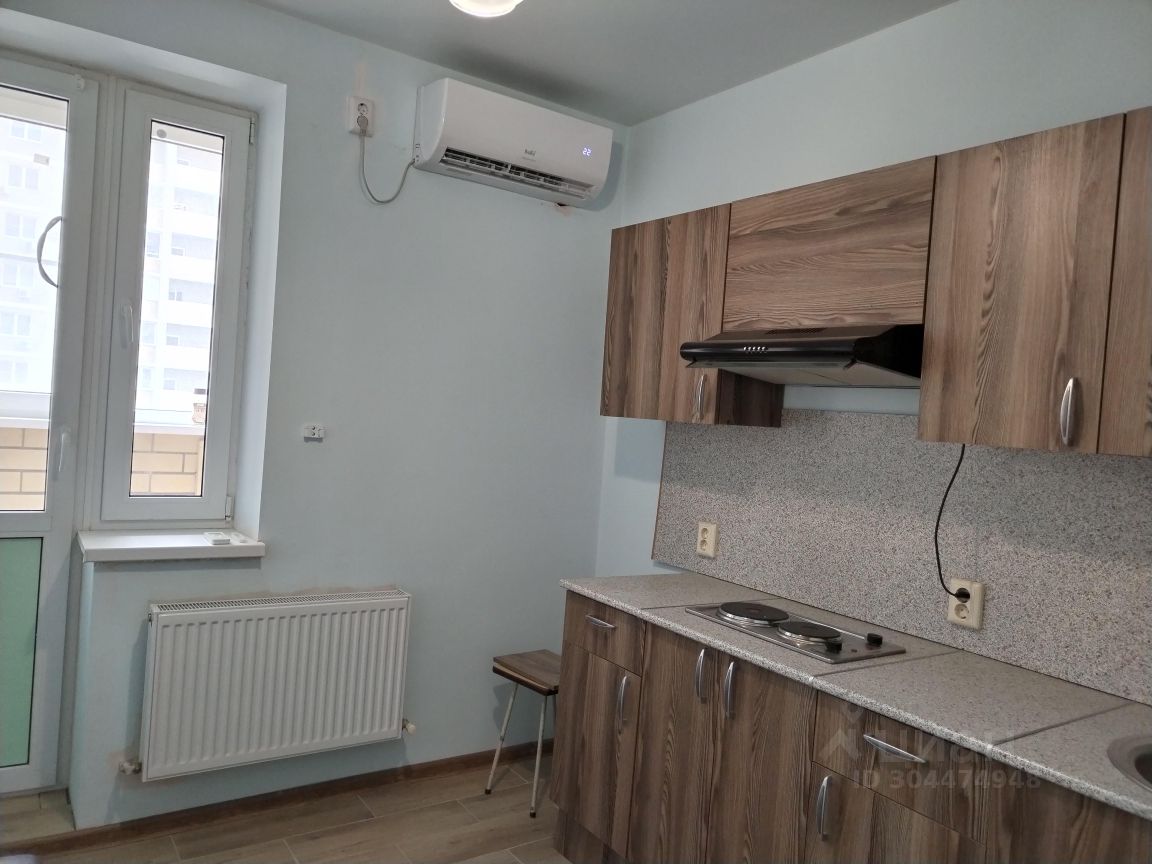 В квартире на кухне кухонный гарнитур, стол с табуретками (4шт), холодильник, сплит-система. Комната без мебели. В ванной стиральная машина есть.