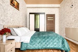 Для вашего удобства в квартире есть все необходимое для комфортного проживания: Кухня оборудована всей необходимой посудой, столовые приборы, СВЧ, холодильник, чайник, электроплита, стиральная машина, водонагреватель, фен, утюг, гладильная доска, сушилка для белья, телевизор. У нас всегдa чистое, свежее постельное белье и полотенца, все это поможет Вам почувствовать себя свежо и комфортно. В шаговой доступности расположены кафе, столовые, магазины. Рядом с домом бесплатная парковка.