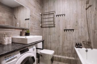 Ванная комната для расслабления. Кондиционер, холодильник, стиральная машина все включено!
