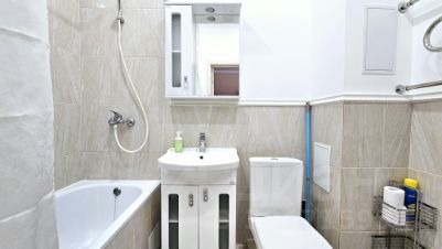 Качественный ремонт , внутри есть все для комфортного проживания: 2 раздельных спальных места,новая мебель, стиральная машина, холодильник, плазменный ТВ, интернет,кухонный гарнитур, постельные принадлежности, фен, посуда, микроволновка, обеденный стол,шкафы для хранения.