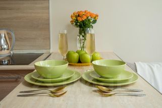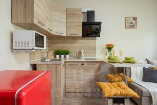 — Бытовая техника: сенсорная варочная панель, микроволновая печь, холодильник с морозильной камерой, электрический чайник, тостер, вытяжка, стиральная машина, бойлер, фен, сплит-система, SMART-телевизор c голосовым управлением, утюг, гладильная доска, сушилка, полотенцесушитель.