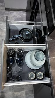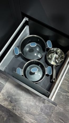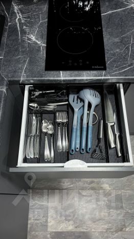 Комплект посуды и столовых приборов, сковородки, кастрюли, необходимая кухонная утварь.