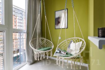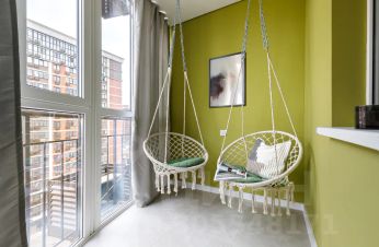 Фишкой данной квартиры является оборудованный двумя креслами-качелями балкон