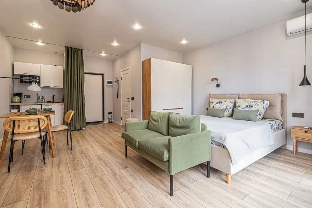 Уютная домашняя обстановка, полностью оборудованные кухня, ванная и спальня