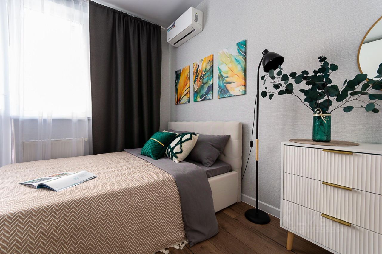В квартире никто не жил, только сделан ремонт. Кровать велюр, ортопедический хороший матрац, Мебель, техника, посуда и все элементы интерьера новые и оформлены по последним трендам.