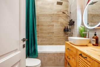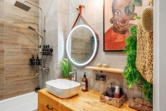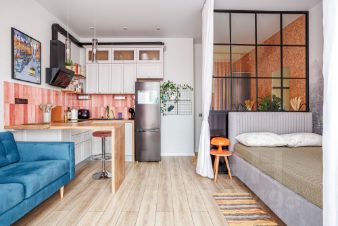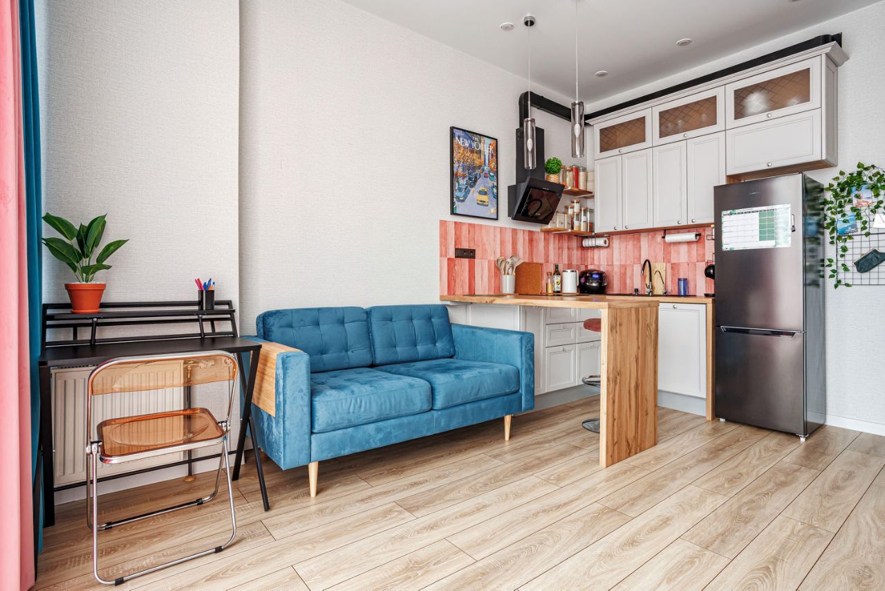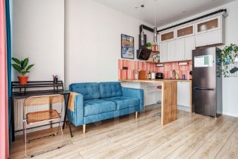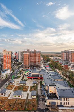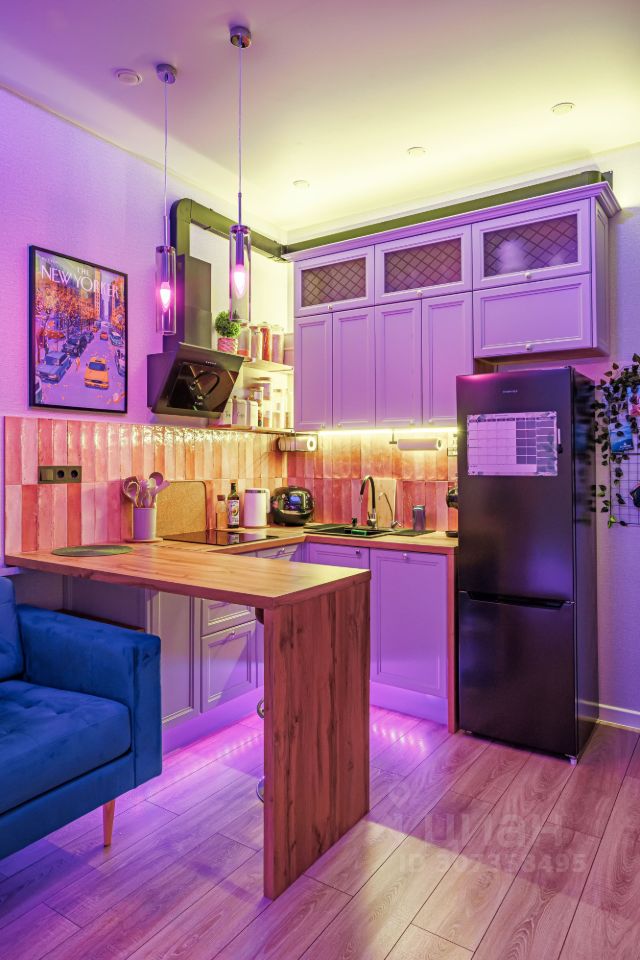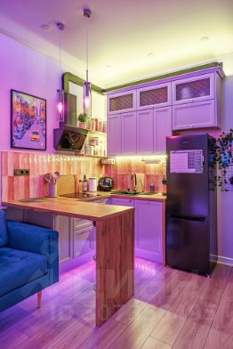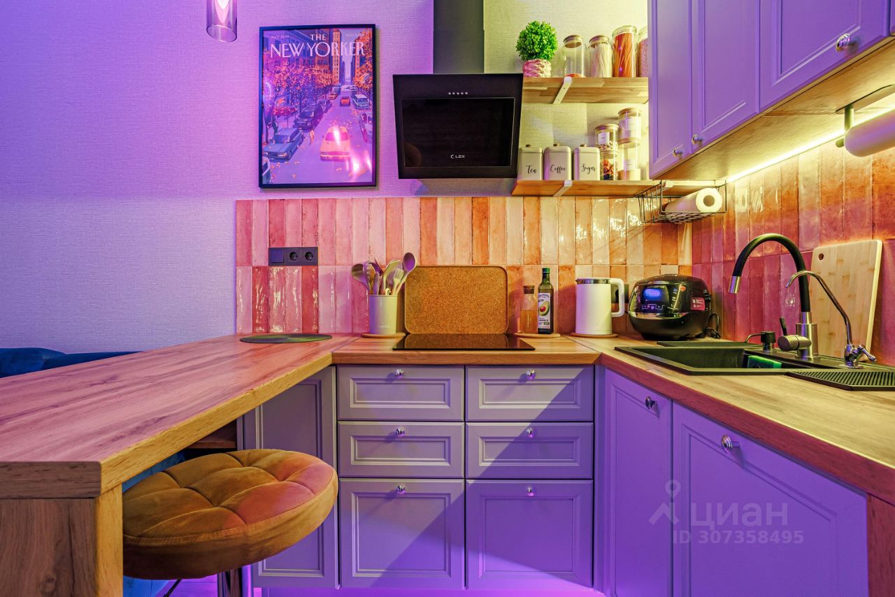 Работает по системе умный дом с Алисой. По всей ширине панорамные окна с красивым видом на ЖК и поле + вечерам прекрасный закат виден из окна. Также в квартире проведена подцветка, что позволяет вечером наслаждаться атмосферой.