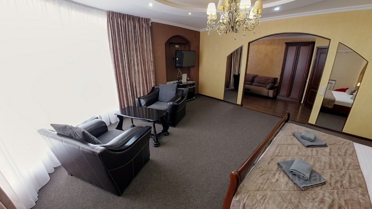 В номере: 1 двуспальная кровать и 1 диван двуспальный.