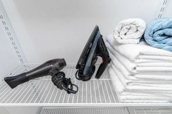 - Многофункциональная гардеробная, плечики для одежды, фен, утюг и гладильная доска