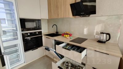 Кухня оснащена встроенным холодильником, посудомоечной машиной, встроенной духовкой и микроволновой печью, чайником, который поддерживает заданную температуру воды , варочной поверхностью.