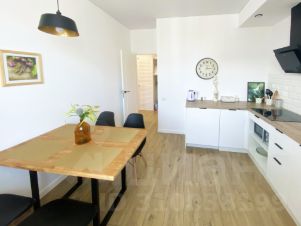 -Полностью укомплектованная мебелью и посудой просторная кухня с обеденной зоной