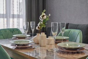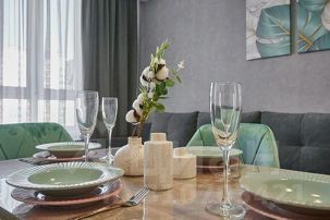 Полностью укомплектованная мебелью и посудой кухня