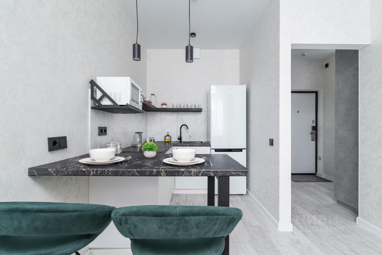 7) Полностью укомплектованная мебелью и посудой кухонная зона