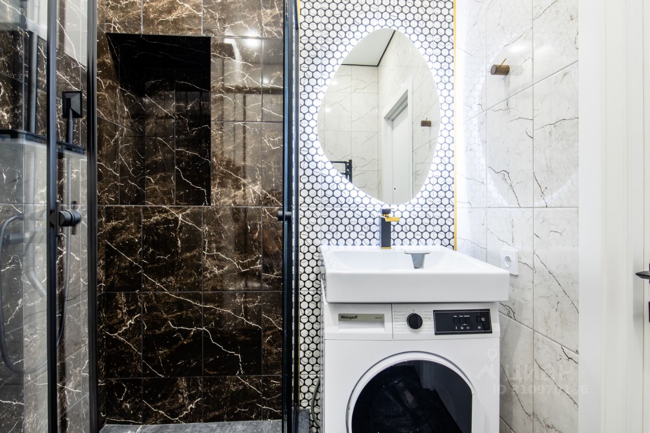 Санузел совмещенный, с душевой кабиной. Установлена стиральная машина