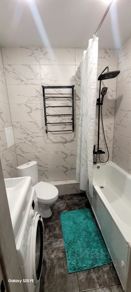 В квартире выполнен качественный евроремонт. Установлена вся необходимая техника: кондиционер, холодильник, телевизор и стиральная машина. Мебель присутствует как на кухне, так и в комнате, что обеспечивает комфортное проживание. Санузел совмещённый, оборудован ванной. В квартире имеется лоджия для дополнительных удобств.