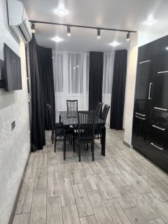 В квартире сделан качественный евроремонт. Уютная обстановка и мебель как на кухне, так и в комнатах. Кухня оснащена необходимой техникой: есть холодильник, посудомоечная машина, кондиционер и телевизор. В ванной комнате установлена ванна, а стиральная машина гарантирует комфортное проживание. Из кухни есть выход на балкон, где можно наслаждаться свежим воздухом и видом.