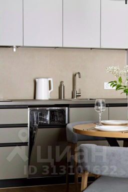 Кухня оборудована необходимой техникой: холодильник, индукционная варочная панель, духовой шкаф, микроволновая печь, посудомоечная машина.
