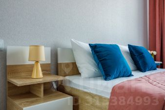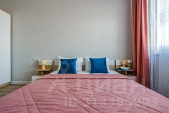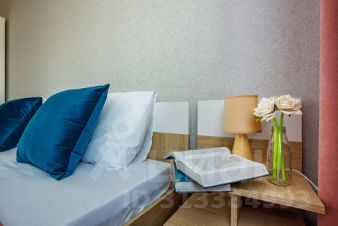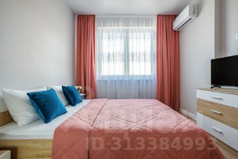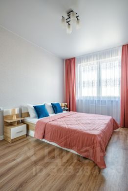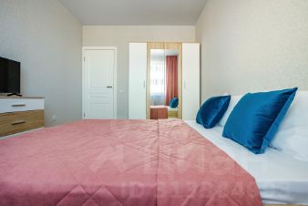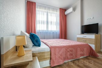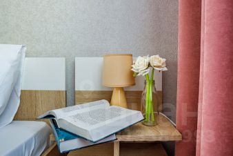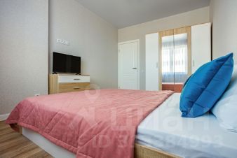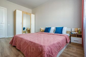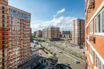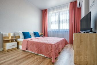 Уютная спальня позволяет разместиться двум гостям. В спальне удобная кровать, шкафы, тумбочки, комод, сплит-система, телевизор. Из окон открывается замечательный вид на улицу Западный Обход.