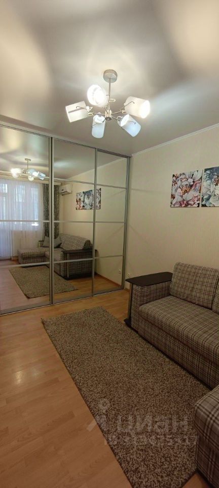 Сдаётся однокомнатная квартира с мебелью и техникой на длительный срок. В квартире есть два раскладных дивана (один в большой комнате, другой поменьше на кухне), большой вместительный четырёхдверный шкаф-купе, тумбочки и вся необходимая мебель на кухне. Из техники: холодильник, стиральная машина, сплит-система, микроволновка, пылесос, варочная панель, духовой шкаф и телевизор. Имеется просторный застеклённый балкон с сушкой для белья. Во дворе и подъезде установлены камеры видеонаблюдения, доступ к ним круглосуточный (на мой взгляд это актуально для людей с автомобилями и детьми). С животными нельзя.