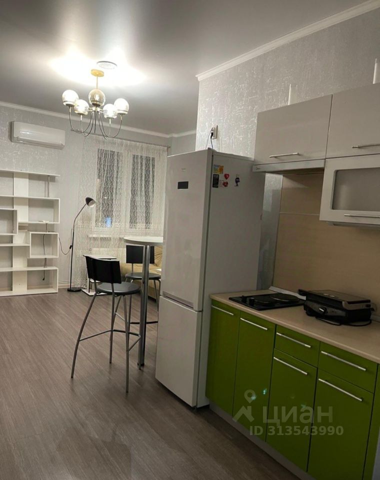 В квартире сделан евроремонт, поэтому всё выглядит современно и стильно. Студия полностью меблирована: есть мебель как в комнате, так и на кухне. Из техники в вашем распоряжении кондиционер, холодильник, телевизор и стиральная машина — всё, что нужно для комфортного проживания. Фото реальные. Санузел совмещённый, оборудован душевой кабиной. Балкон с видом во двор позволит насладиться свежим воздухом.
