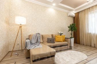 В апартаментах есть всё, чтобы вам было уютно и комфортно как дома. В квартирах выполнен европейский ремонт и создан стильный интерьер. Панорамные окна открывают чудесный вид на центр города. Современная кухня оборудована всей необходимой бытовой техникой (холодильник, посудомоечная машина, микроволновая печь, индукционная плита с сенсорным управлением, чайник), в ней также имеются посуда и столовые приборы. В комнате стоит большая удобная кровать с ортопедическим матрасом, на кухне раскладывающийся двуспальный диван.