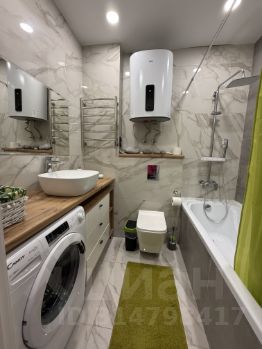 Совмещённый санузел с ванной, стиральной машиной, феном.