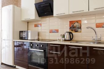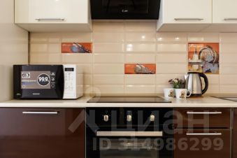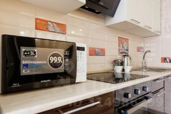 Уютная кухня с обеденным столом, стульями, современным кухонным гарнитуром, электроплитой, холодильником, микроволновой печью, электрочайником, посудой и всем необходимым для приготовления вкусных блюд.