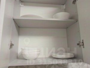 Уютная новая кухня, холодильник, плита, в кухне есть все принадлежности для приготовления пищи.