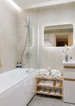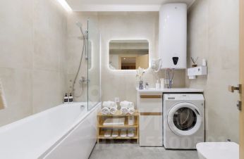 - Ванная комната: душевая кабина, набор люксовой косметики, фен, стиральная машина