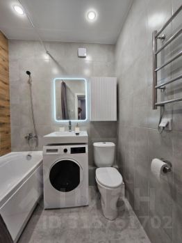 Гардеробная с шкафом-купе, современный санузел с полотенцесушителем.