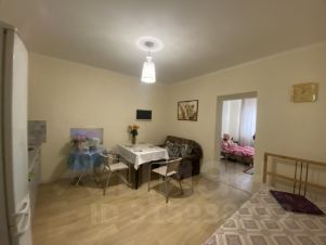 В квартире просторная душевая, прихожая,отдельный туалет, кухня- столовая, с обеденным столом и диваном. Проход в спальню через кухню- столовую. Новый холодильник, телевизор, посуда, кондиционер - свежий ремонт.