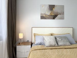 Светлая, чистая, ухоженная квартира с тёплой атмосферой. Всё сделано для уюта и комфорта, как для себя. Просторная планировка бабочка — две отдельные комнаты, санузел раздельный, кухня отдельно. В спальне — большая двуспальная кровать с ортопедическим матрасом и свежим постельным бельём. В зале — просторный раскладывающийся диван, который легко превращается в полноценное спальное место.