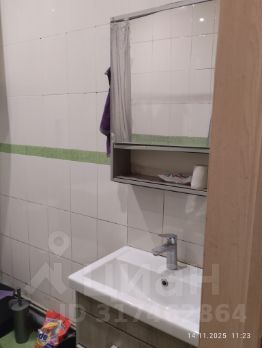 В ванной есть отдельностоящая раковина с тумбой и навесным шкафчиком.