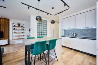 Полностью укомплектованная мебелью и посудой кухонная зона
