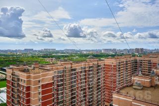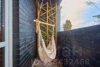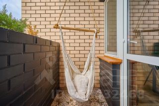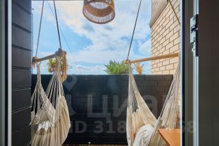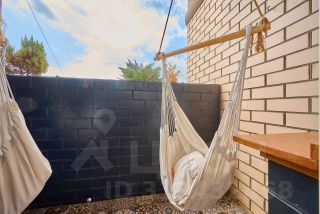 Просторный балкон с потрясающим видом на город, оборудованный удобными гамаками-качелями.