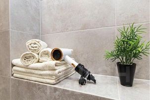 Бытовая техника: плита, холодильник, фен, утюг, стиральная машина, кондиционер, микроволновка.