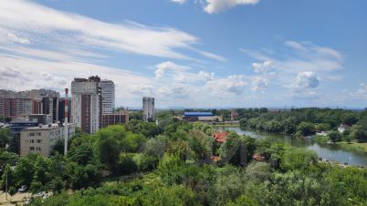 Просторные и пропорциональные помещения, много мест для хранения, 2 дивана, гардеробная переоборудована под жилую комнату, сануз/разд. лоджия из кухни, окна во двор, вид на затон, Олимп. Фото соответствует наличию мебели и техники.