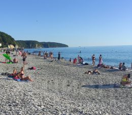 Благоустроенный городской пляж и дикий пляж (в другой стороне).