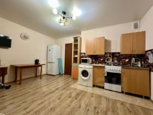 Квартира после косметического ремонта, полностью меблирована. В комнате есть всё необходимое для комфортного проживания: удобная мебель, кондиционер, телевизор, холодильник и стиральная машина. Санузел совмещённый и оборудован ванной. Балкон имеется.