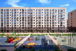 В комплексе современные спортивные и детские площадки, огороженные зоны для активного спорта, тренажеры и турники.