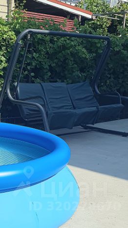На озелененной территории есть мангал, скамейки, столы, скамейка, диван-качели с мягкими подушками и детский бассейн. Парковка находится у ворот рядом с домом.