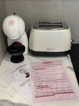кухня оборудована кофе машиной, тостером, посудомоечной машиной, чайником, варочной панелью, микроволновкой