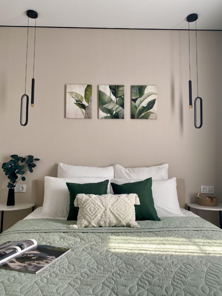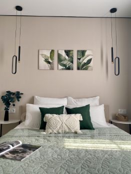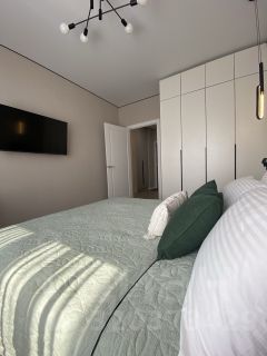 • Спальня: широкая двуспальная кровать с постельным бельем как в отеле