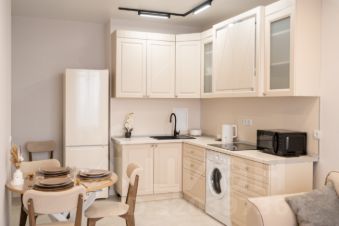 кондиционеры , телевизор,утюг, фен и тд, даже купили всю новую посуду, ложки вилки, постельное белье, подушки, одеяло и полотенца.