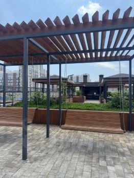 На территории ЖК расположены детские площадки, зоны отдыха, фонтаны, тренажёры и несколько футбольных полей, сама площадка расположена на стилобате (закрытая территория с мангальной зоной), где вы можете отдохнуть с гостями.